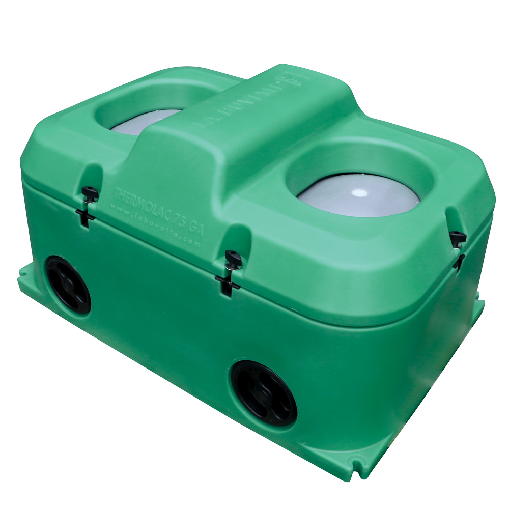 L’abreuvoir isotherme grand accès Thermolac 75 GA de La Buvette offre une capacité de 75L avec trappes isolantes flottantes pour un accès extra large à l’eau. Son isolation thermique jusqu’à -30°C sans électricité, sa nouvelle vidange canalisable et sa robinetterie délivrant 34 l/min en font un choix idéal. Avec un accès 32% plus grand, il permet de distribuer de l’eau fraîche pour réduire le stress thermique et améliorer les performances des animaux. Dimensions : 640x660x532 mm, poids : kg.