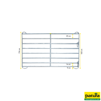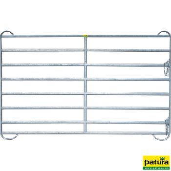 Le Panel-8 de la marque Patura est un panneau de contention de 3,60 m de longueur et 1,94 m de hauteur, conçu pour les vaches laitières, les vaches allaitantes et les taureaux. Il est idéal pour les couloirs d’accès et convient aux bovins de moyenne et grande taille. Comparé au Panel-6, le Panel-8 dispose d’un tube supplémentaire en haut pour éviter les passages par le haut et d’un tube supplémentaire en bas pour éviter la levée des panels, ce qui est important dans les couloirs de contention.
